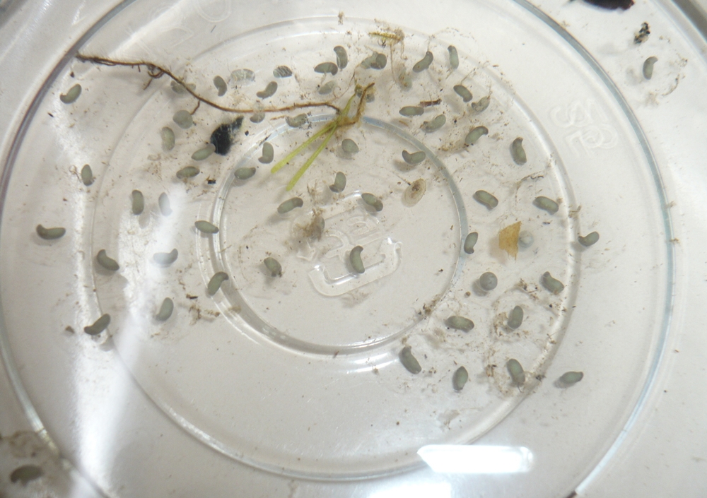 4日目の状態、いい感じです。丸いままのものは孵化しない無精卵です。
