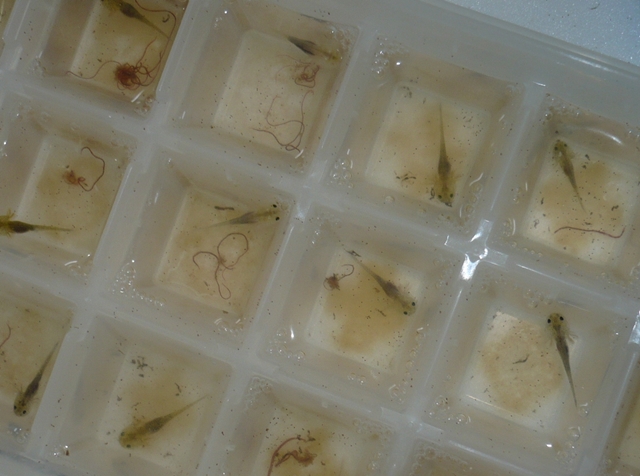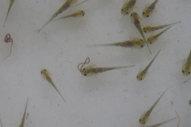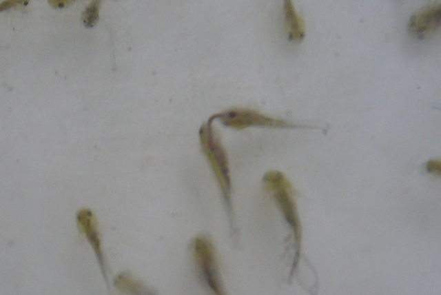 ブラインを食べるイベリア幼生たち