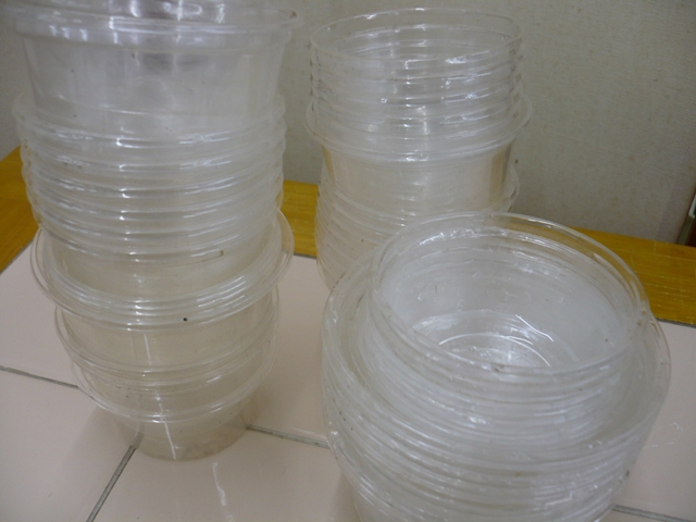 プリンカップも数が多いと面積だけ取られますので、こちらも100円ショップの整理グッズを活用。
