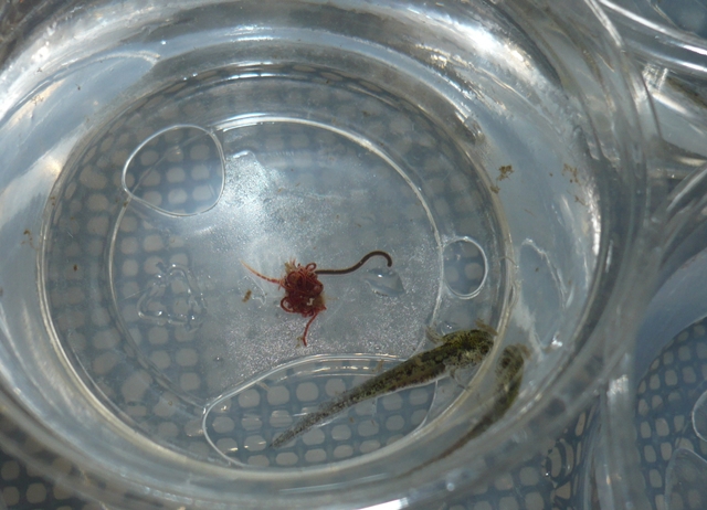 1匹ずつのプリンカップ飼育に切り替えましたイベリアトゲイモリ幼生。