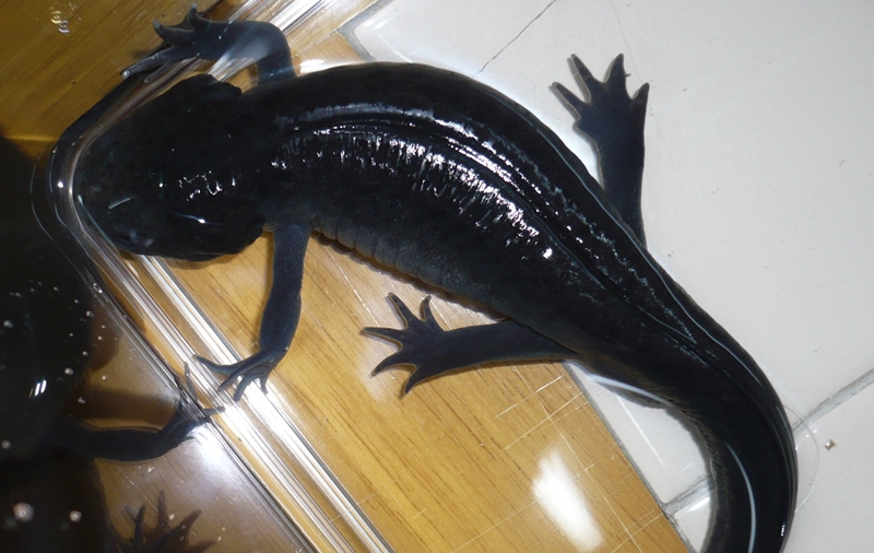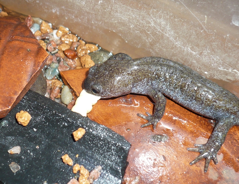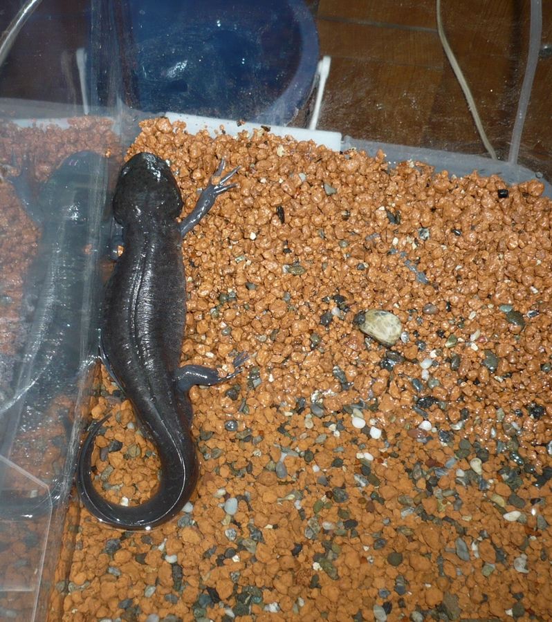 クロサンショウウオも久しぶりのご馳走に必死で喰らいつく!!