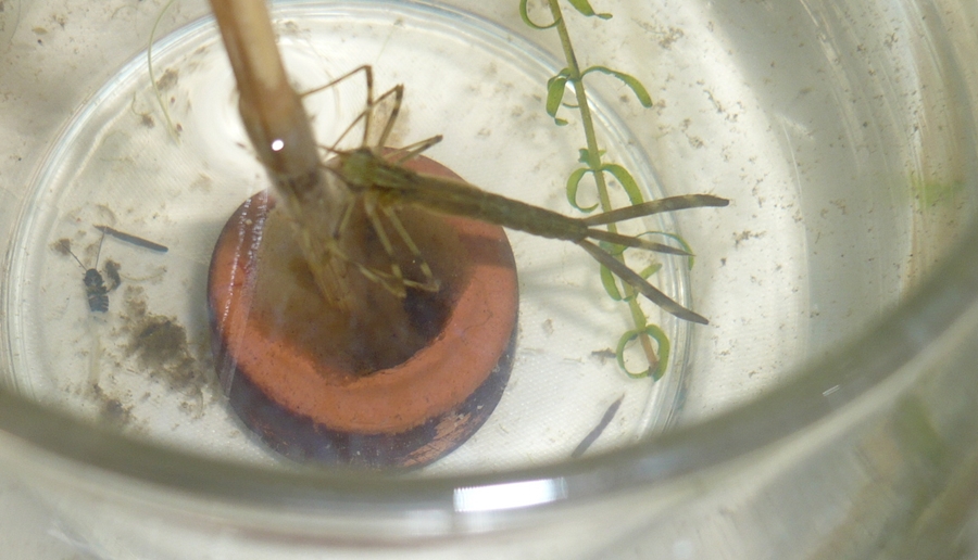 そんなエビモに引っ付いてきたのがカワトンボのヤゴ。