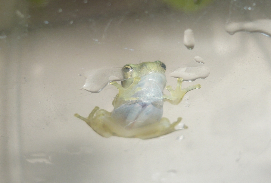 4匹すべて出揃いましたモリアオガエルが変態完了、カエルになりました。