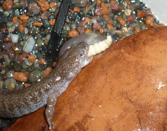中でも久しぶりにハニーワームを味わうカスミサンショウウオ。