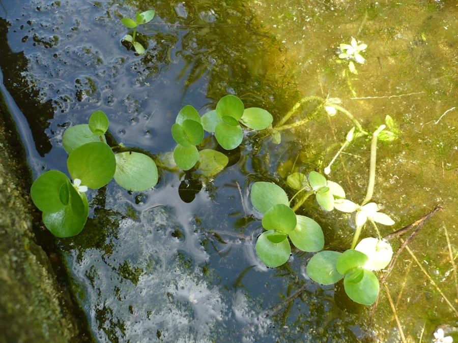アゼナの仲間ながら浮き葉を張り巡らせ花を咲かせる。