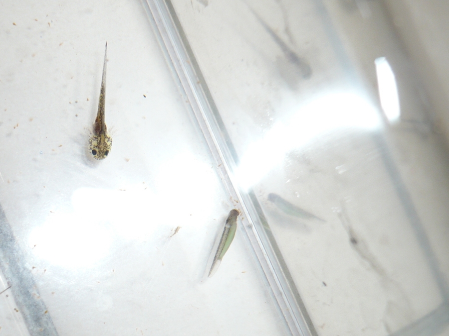 ほんの2~3日先に孵化した幼生。これだけの違いがあるのです。