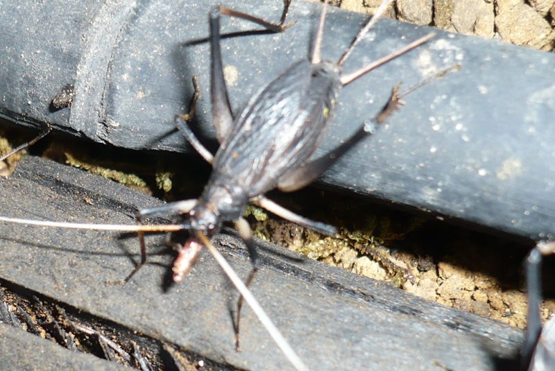 餌場を後にゆっくり食事するメスのスズムシ。