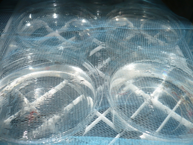 でも、餌の時間が終わったらこのように自殺防止ネットの出番。