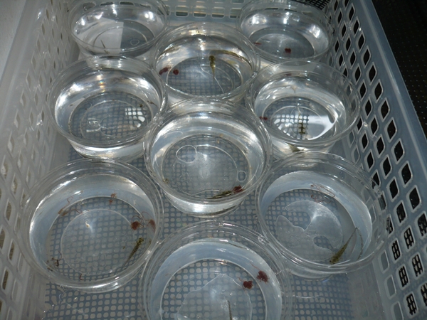 予定日より1週間早く孵化した!孵化したというより破れて誤って出てきてしまった幼生たち。