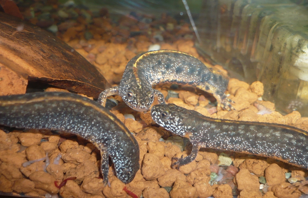 7匹いるダニューブクシイモリ。