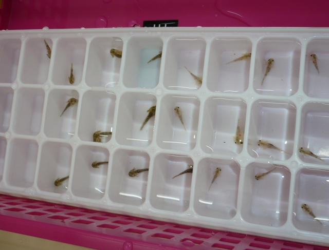この段階に来たウパは順次ヤフオクで里子に出ますから、また製氷皿からプリンカップへ移る子が並ぶわけです。