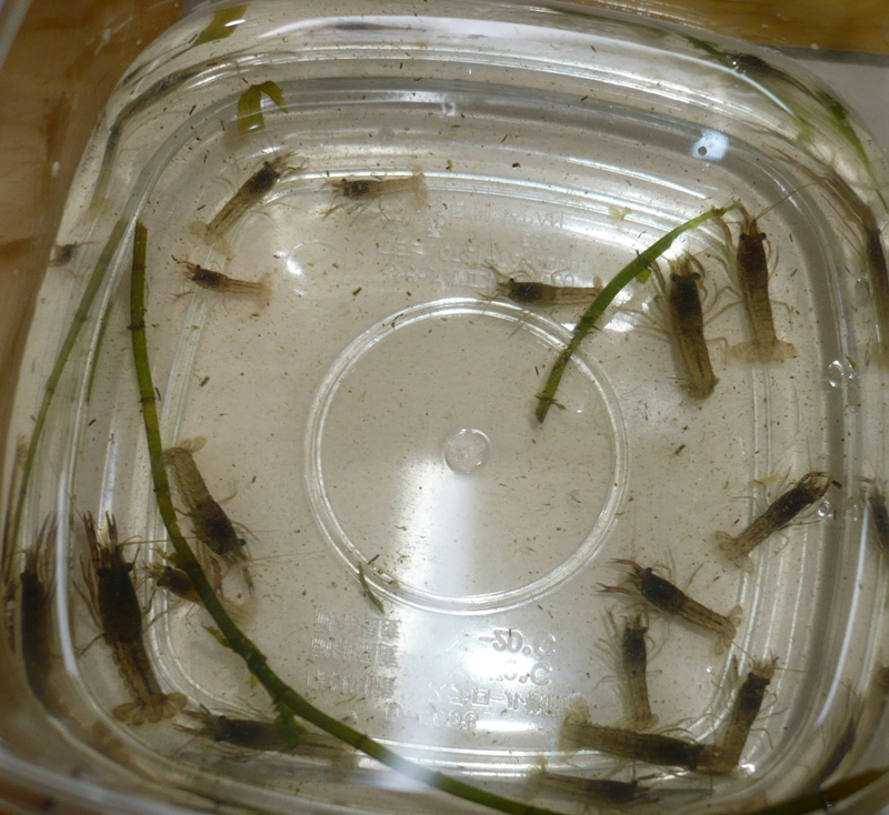 数が減ると予想してましたが、ハサミの小さなザリガニは共食いが少ないらしく、ほぼ数はそろっていました。